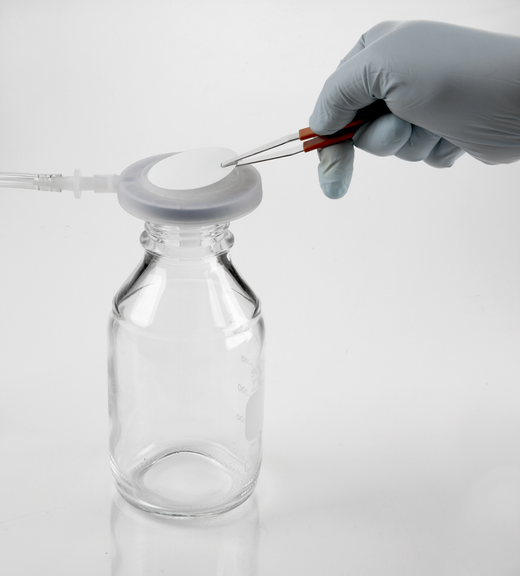 Solvac filter holder, a Pall Life Sciences product, features a versatile design that fits most HPLC bottles, flasks, and containers, and eliminates the added steps of washing flasks and transferring mobile phase solvent from flask to reservoir.